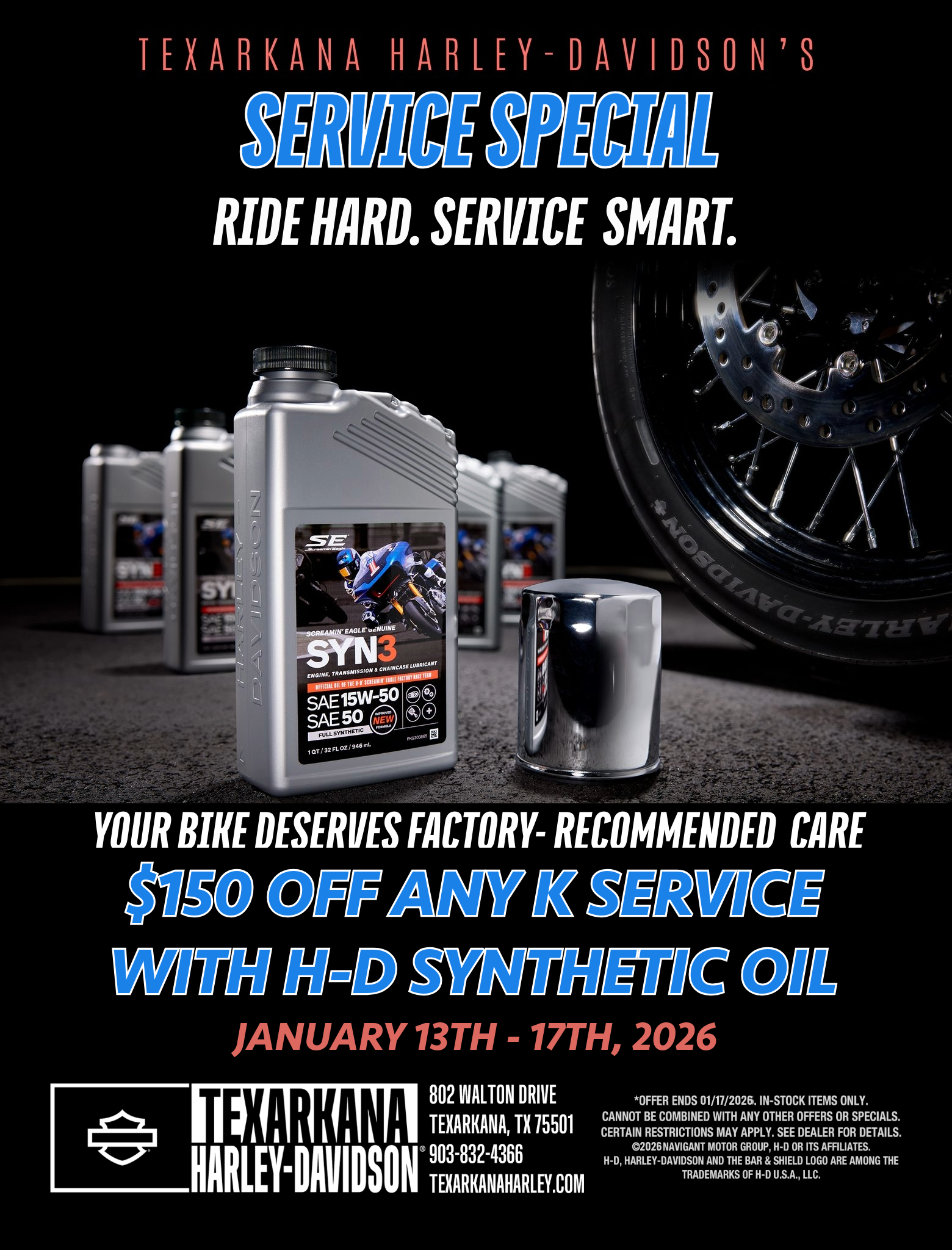 $50 TIRE INSTALL – FAST, AFFORDABLE, AND DONE BY THE PROS AT TEXARKANA H-D.