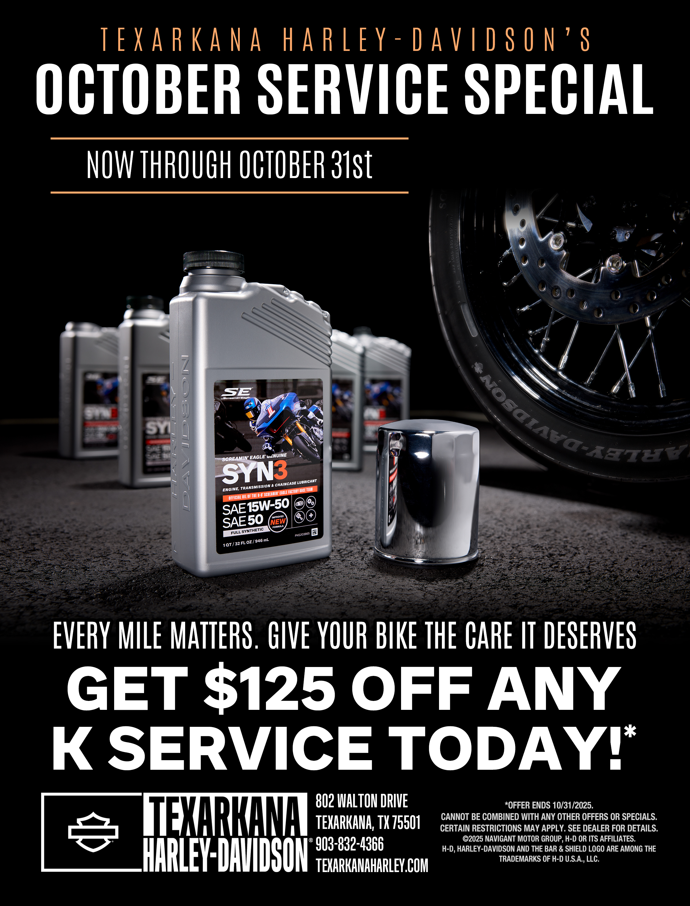 Click the link to schedule your next appointment today! https://texarkanaharley.com/service